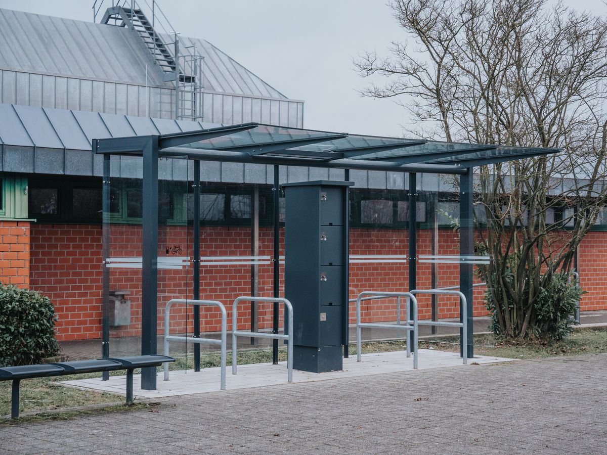 Belüftete Schließfächer, ausgestattet mit je einer abgesicherten Schuko-Steckdose für die Ladegeräte sowie ausreichend Platz für Fahrradhelm o. ä.