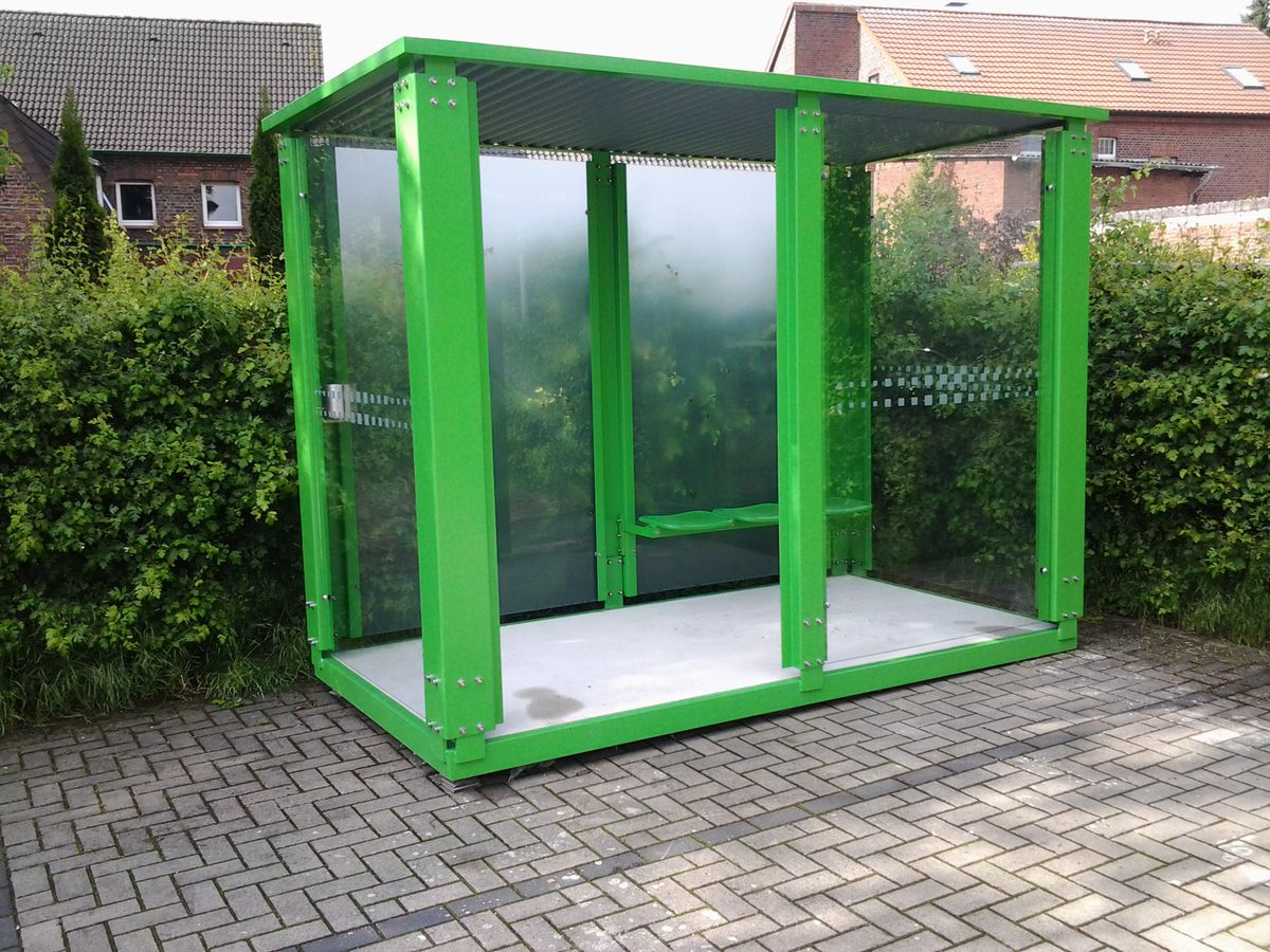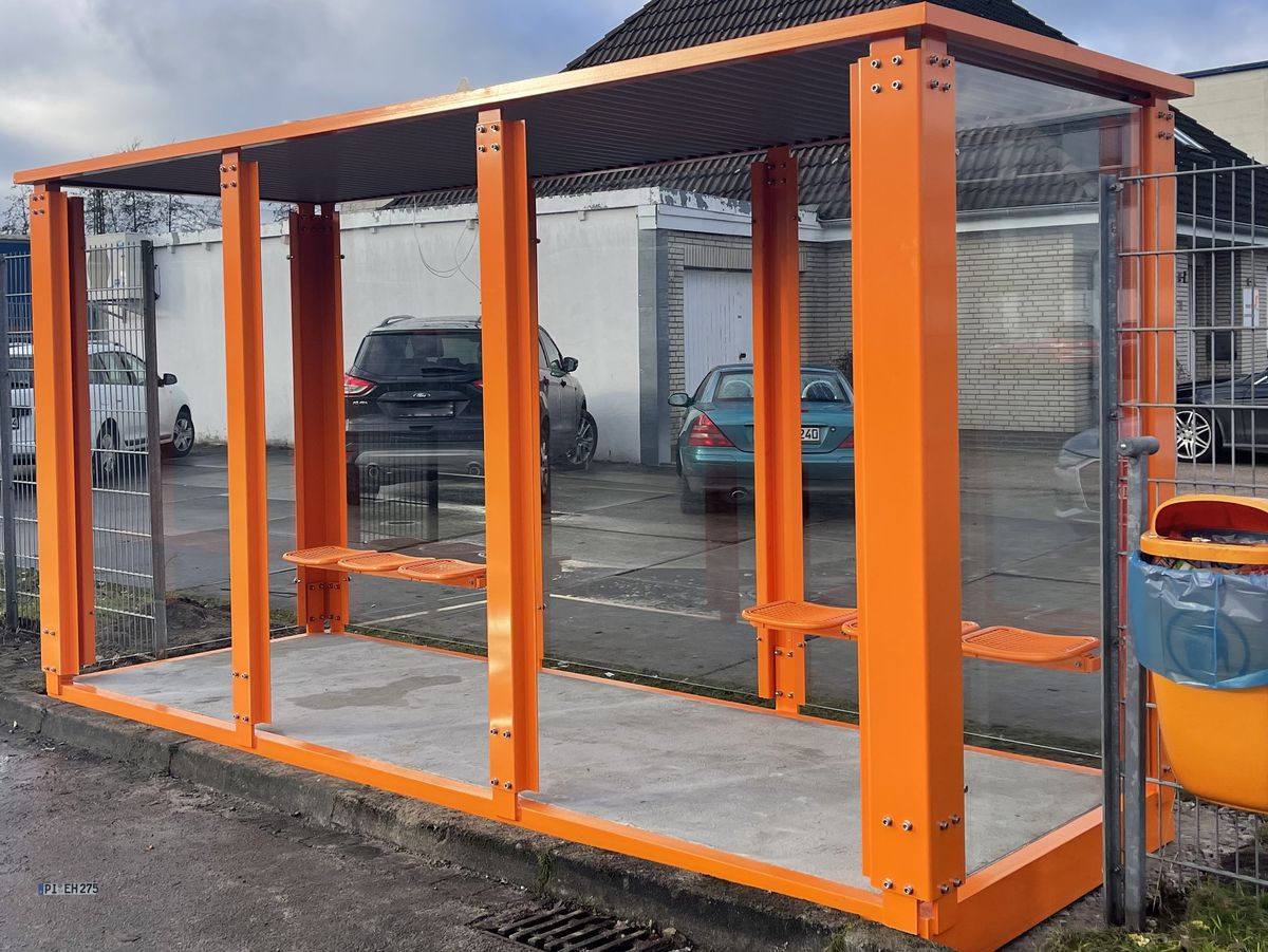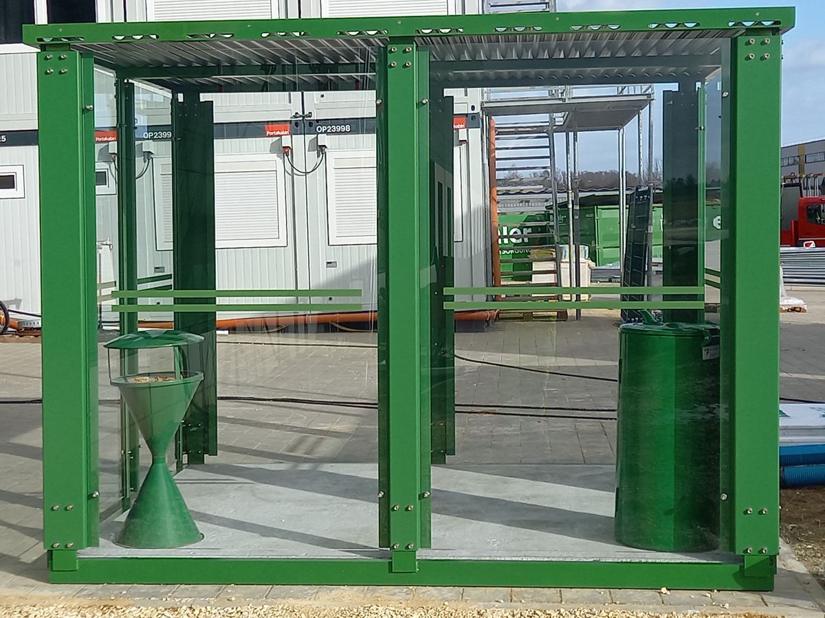 Rauchunterstände bieten einen definierten und bequemen Platz zum Rauchen, der mit Sitzgelegenheiten und Aschenbechern ausgestattet sein kann.