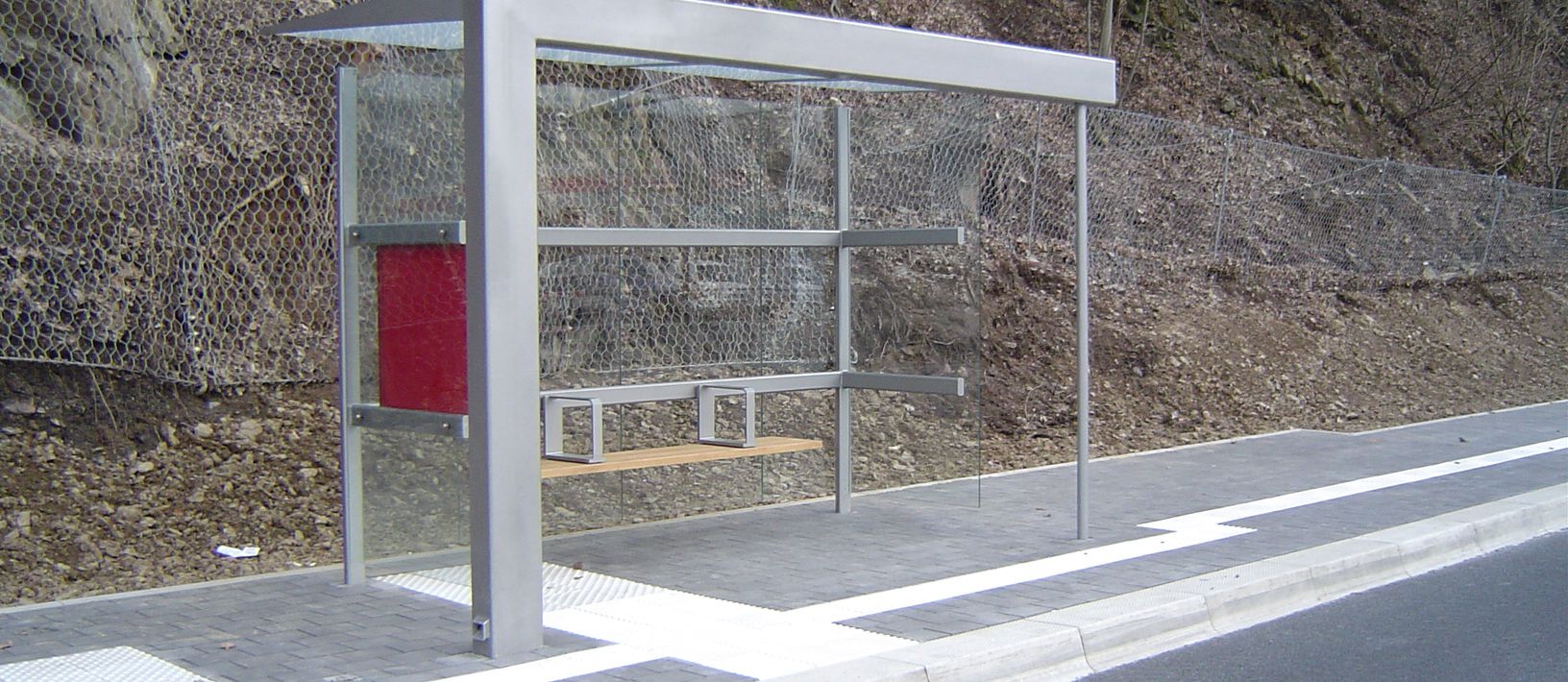 Eine vierfeldrige Ausführung einer Wartehalle am Straßenrand