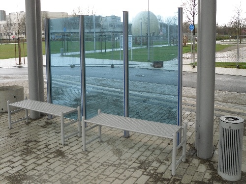 Grundkonstruktion: ovale Aluminium-Strangpressprofile. Beschichtung nach RAL, auf Wunsch auch mehrfarbig.